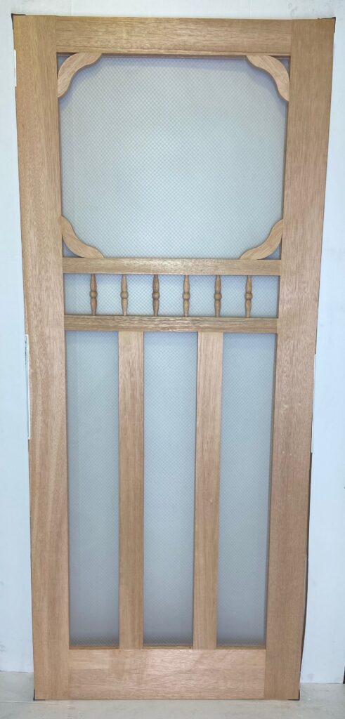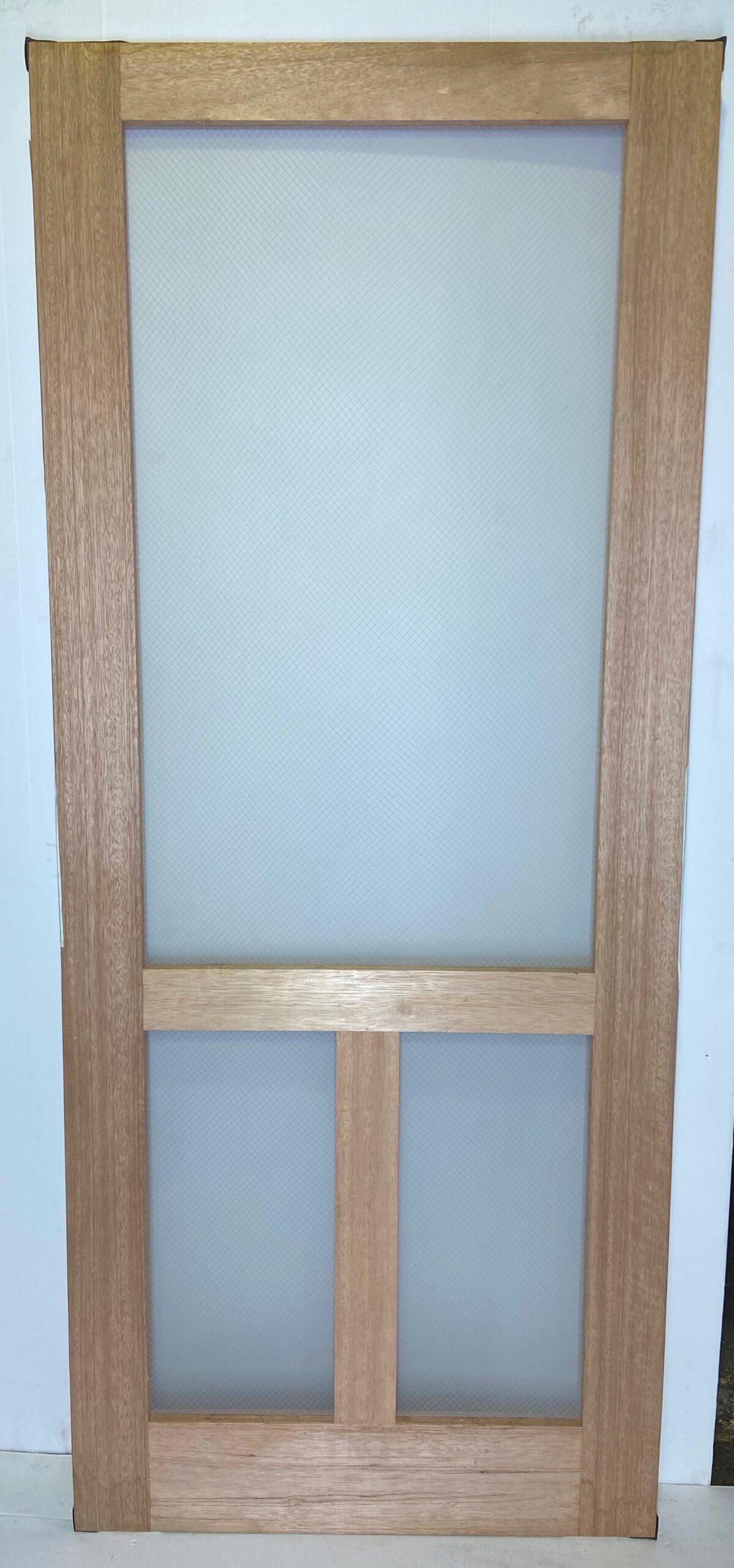 All doors are 870 x 2080 x 30mm solid Meranti, and can be cut down to suit 820 x 2040 door frames, without any fear of affecting the door’s structural integrity. Doors are already fitted with a white flywire (we won’t be offended if you replace it), to get you started. Ask about latch sets and hinges in different finishes to complete the package.